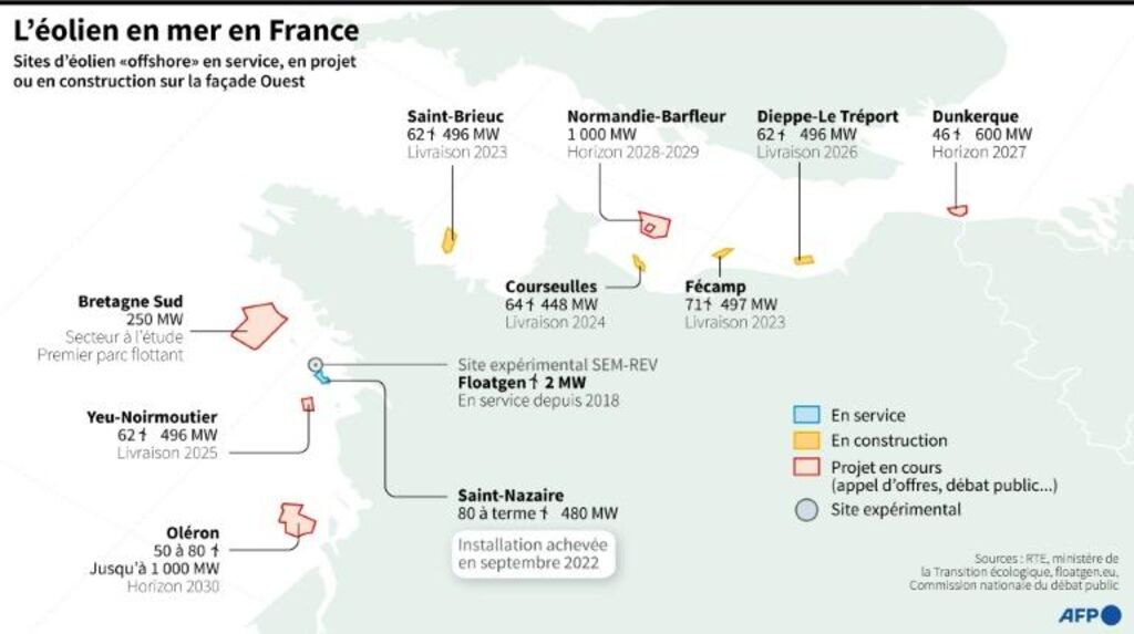 Le texte insiste notamment sur le photovoltaïque et l'éolien en mer, dans la lignée de l'ambition affichée par Emmanuel Macron de multiplier par dix d'ici à 2050 la capacité de production d'énergie solaire pour dépasser les 100 GW et de déployer 50 parcs éoliens en mer pour atteindre 40 GW.