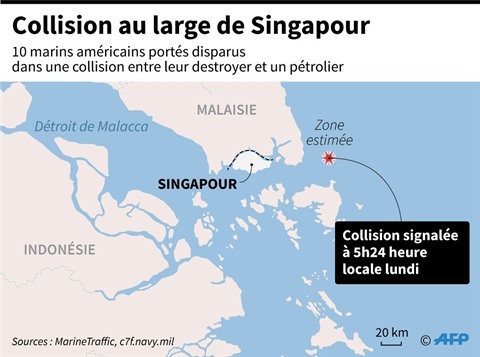 >>Collision au large de Singapour : 10 marins d'un destroyer américain portés disparus, 5 blessés