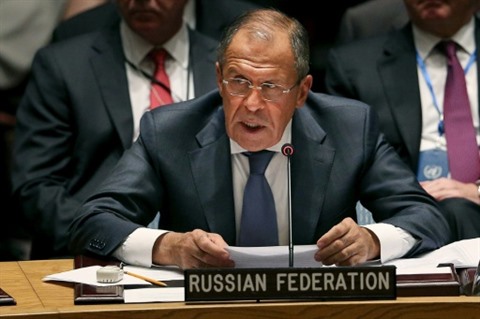 | Le ministre des Affaires étranngères russe Serguei Lavrov, lors d'une session du Conseil de sécurité de l'ONU, le 24 septembre 2014 à New York. |