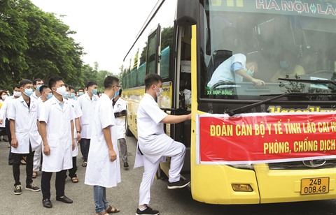 | Des médecins et infirmiers de la province de Lào Cai viennent à Bac Giang pour l’aider à lutter contre la pandémie. |