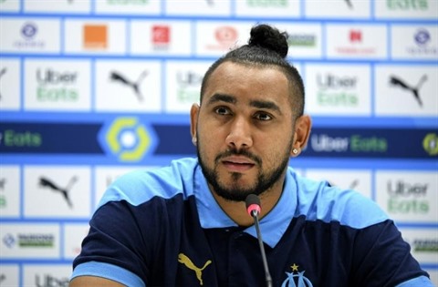 | L'attaquant de Marseille, Dimitri Payet, en conférence de presse au Vélodrome, le 11 septembre 2020. |