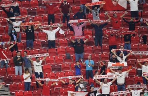 Quant aux fans de Séville, l'équipe sacrée en Ligue Europa, ils sont encore moins nombreux - mais ils chantent très fort - dans les travées: moins de 350 supporters andalous ont été du voyage, et il a fallu parcourir plusieurs bars du centre-ville avant d'en croiser une trentaine dans l'après-midi. Au sein d'un petit groupe d'aficionados, Silvia Guijarro, comme tous les autres fans, a dû se soumettre à un test virologique pour entrer en Hongrie, pays dont les frontières sont fermées.