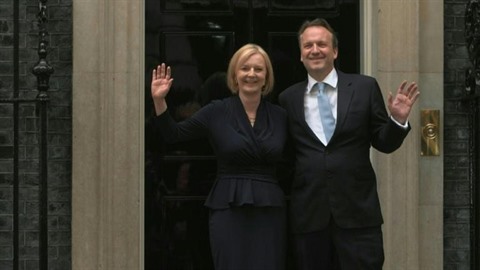| Liz Truss et son mari Hugh O'Leary devant le 10 Downing Street, le 6 septembre à Londres. |