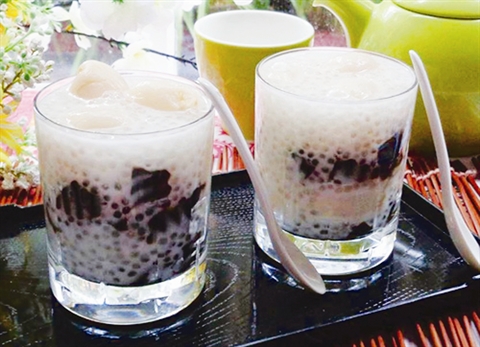• Étape 4 : Mettre les litchis et la gelée noire dans des verres, puis y verser la préparation à la poudre bang.