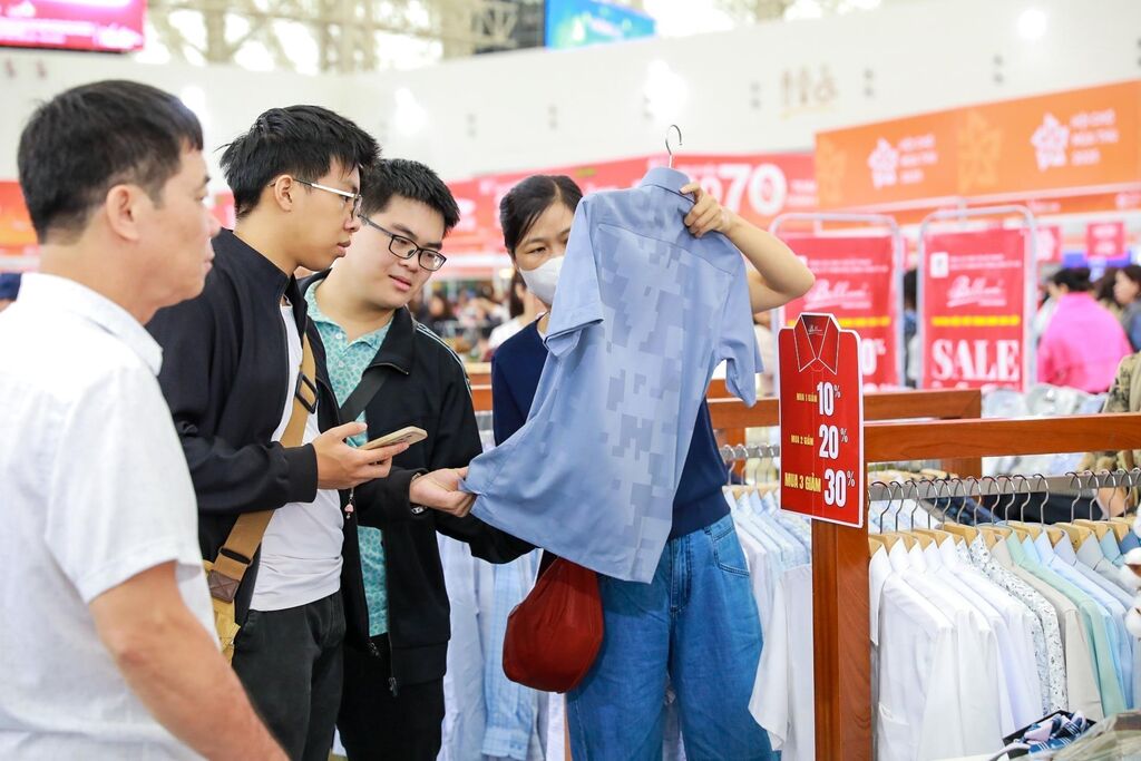 Au cœur de la foire, le stand de la coopérative de couture du village artisanal de Vân Tu à Phú Xuyên, en banlieue de Hanoï, attire de nombreux visiteurs par l’élégance de pièces cousues à la main avec un grand soin.