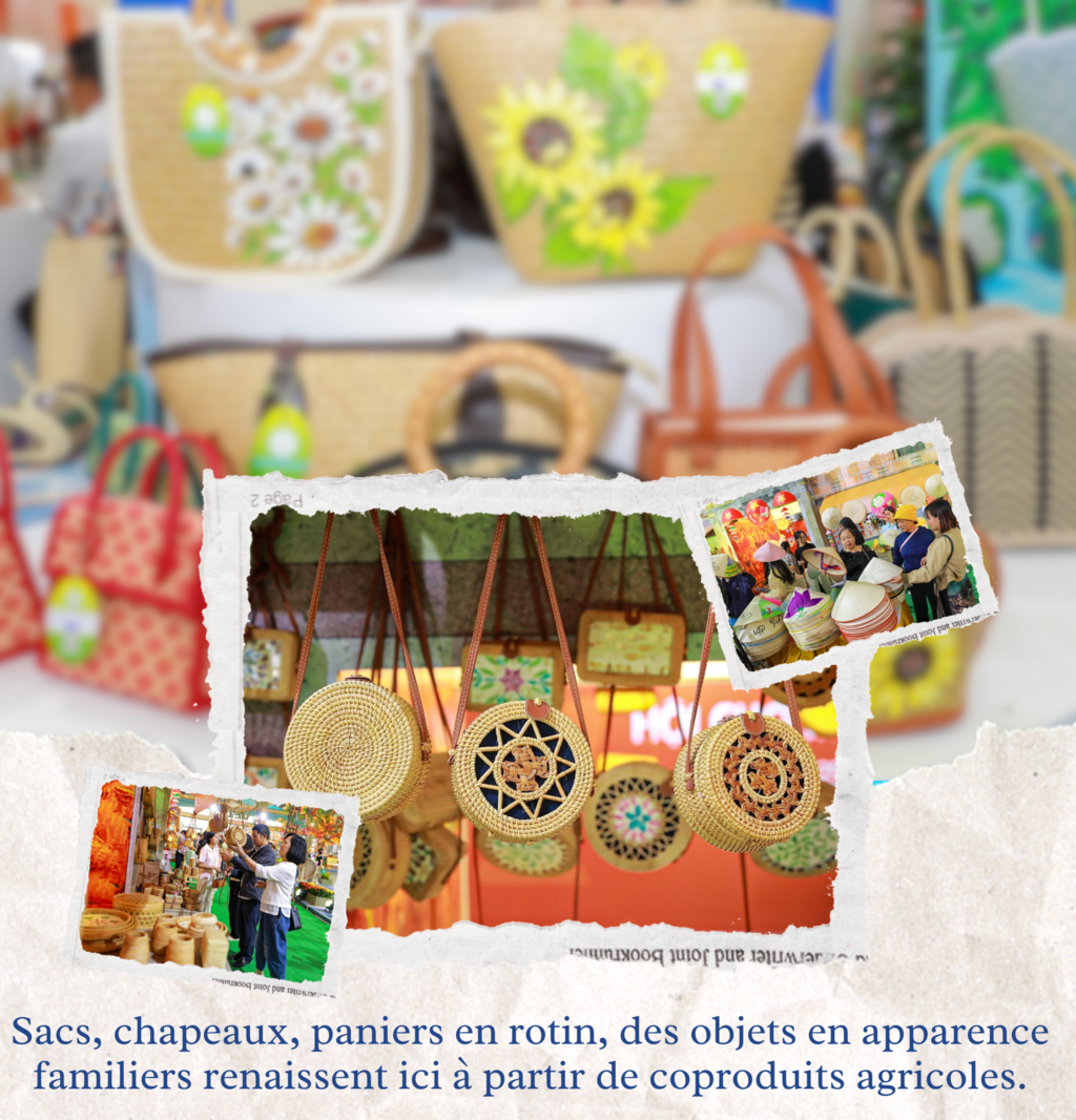 Au centre de l’espace d’exposition, le stand de la société par actions Musa Golden Lào Cai se distingue avec des créations inédites à base de fibre naturelle de bananier. Sacs, chapeaux, paniers en rotin, des objets en apparence familiers renaissent ici à partir de coproduits agricoles.