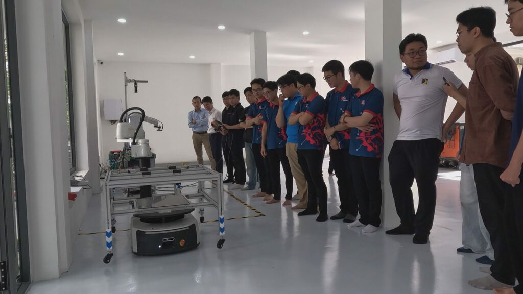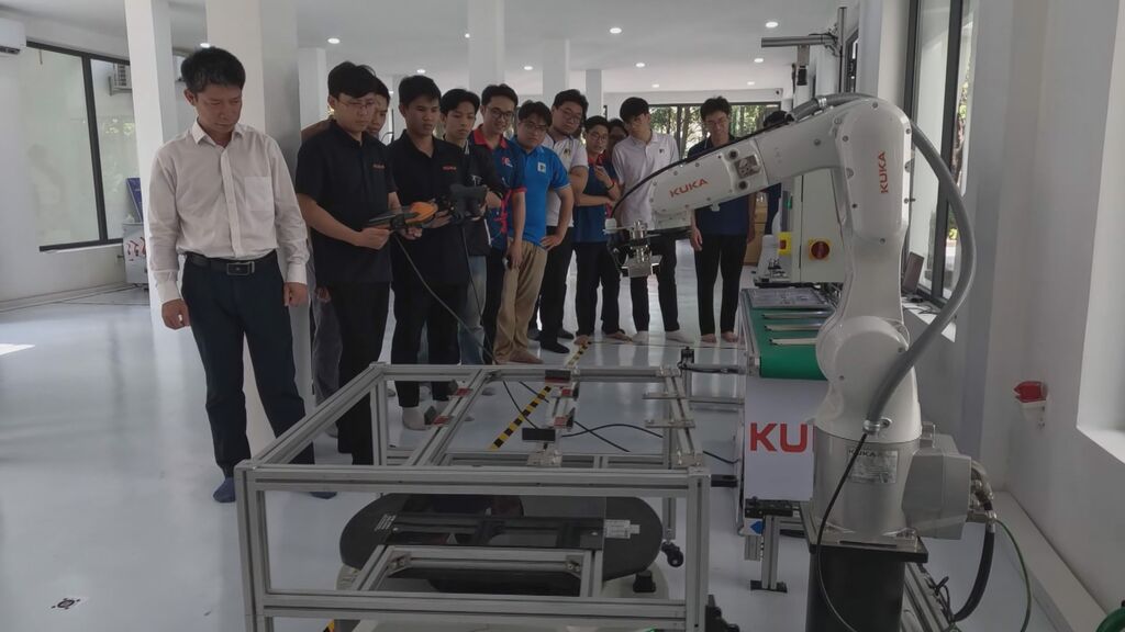 | L'entreprise Kuka Vietnam finance pour l’École polytechnique de l’Université de Đà Nẵng un laboratoire industriel de pointe, équipé d’une chaîne de production entièrement automatisée. |