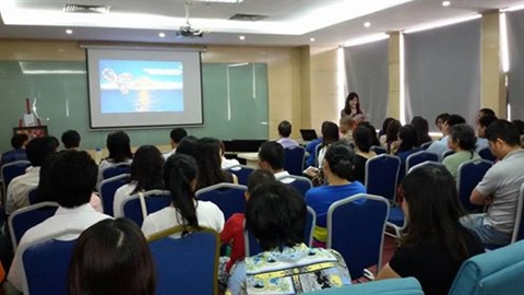 | Lancement du programme «Lever du soleil pour vous» (Sunrise for U), le 24 mai à l’École supérieure de commerce extérieur de Hanoi. |
