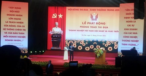 À cette occasion, le Premier ministre Nguyên Xuân Phuc, le président Comité central du Front de la Patrie du Vietnam, Nguyên Thiên Nhân, et la vice-présidente du Vietnam, Dang Thi Ngoc Thinh, ont remis la coupe "Thanh Giong" à 100 entrepreneurs exemplaires du Vietnam en 2016.