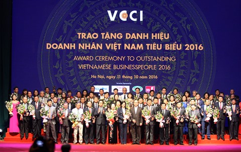 | Des entrepreneurs exemplaires du Vietnam en 2016 à la cérémonie de remise de la coupe "Thanh Giong", le 11 octobre à Hanoi. |