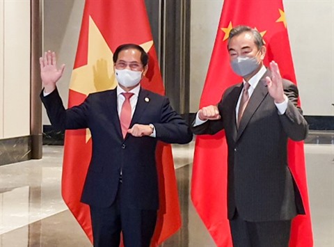 | Le ministre vietnamien des Affaires étrangères Bùi Thanh Son et son homologue chinois Wang Yi. |