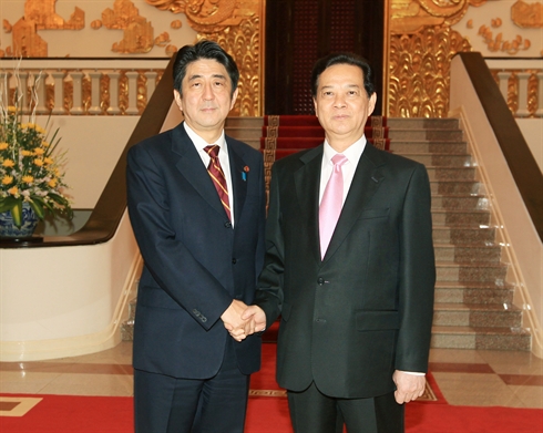 | Le Premier ministre japonais Shinzo Abe (gauche) et son homologue vietnamien Nguyên Tân Dung, le 16 janvier à Hanoi |