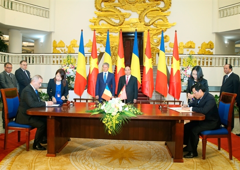 | Les deux Premiers ministres vietnamien et roumain témoignent de la signature d'accords de coopération bilatérale dans la culture, l'éducation et l'énergie. |