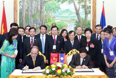 | Signature d'un accord de coopération entre les Assemblées nationales vietnamienne et lao. |