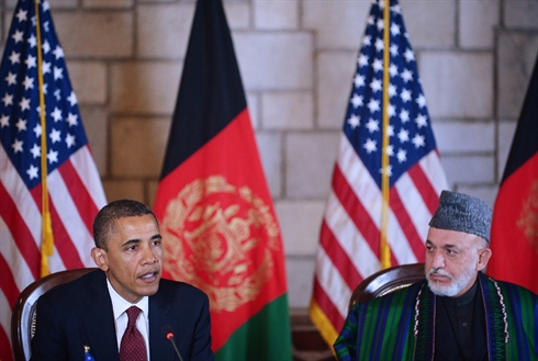 | Le président des États-Unis Barack Obama (gauche) et son homologue afghan Hamid Karzaï, se sont rencontrés pour la dernière fois le 2 mai à Kaboul. |