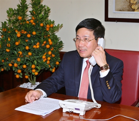 | Le vice-Premier ministre et ministre vietnamien des AE, Pham Binh Minh, a eu vendredi 13 février un entretien téléphonique avec le secrétaire d'État américain, John Kerry. |