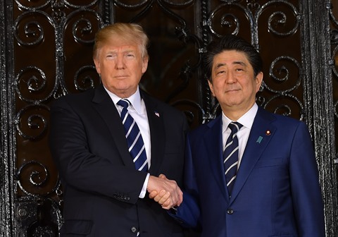 | Le président américain Donald Trump (gauche) et le Premier ministre japonais Shinzo Abe. |