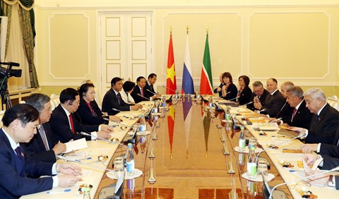 La présidente de l'AN vietnamienne Nguyên Thi Kim Ngân a déclaré que le Vietnam attachait également une grande importance à la promotion de la coopération entre les localités du Vietnam et de la Fédération de Russie. La République du Tatarstan est l'une des régions économiques les plus développées de la Fédération de Russie, avec un haut degré d'industrialisation avec des industries clés telles que la production de camions Kamaz, les produits chimiques, les avions civils et les hélicoptères, la chimie alimentaire, le textile, la fabrication de meubles, et a eu un certain nombre de projets de coopération avec le Vietnam.