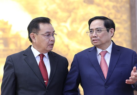| Le Premier ministre Pham Minh Chinh (droite) et le président de l'Assemblée nationale lao, Saysomphone Phomvihane. |