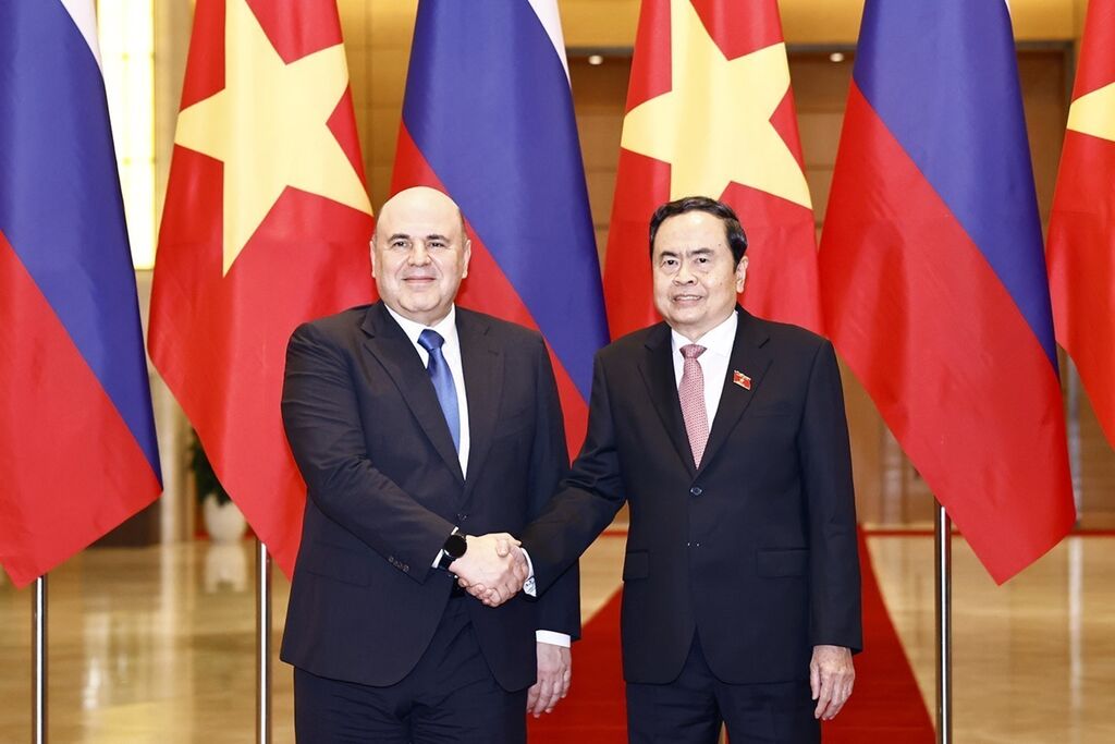 | Le président de l’Assemblée nationale vietnamienne, Trân Thanh Mân (droite) et le Premier ministre russe Mikhaïl Michoustine. |