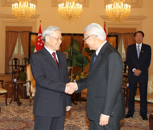 Le secrétaire général Nguyên Phu Trong a invité le président Tony Tan Keng Yam à effectuer une visite au Vietnam, invitation qui a été acceptée avec plaisir.