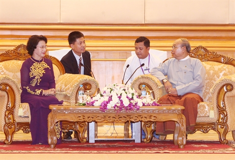 | Entrevue entre Nguyên Thi Kim Ngân et Mahn Win Khaing Than, le 29 septembre à Nay Pyi Taw, au Myanmar. |