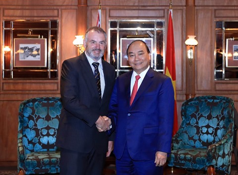 | Le Premier ministre Nguyên Xuân Phuc (droite) et le président de la Chambre des représentants néo-zélandais, Trevor Mallard. |