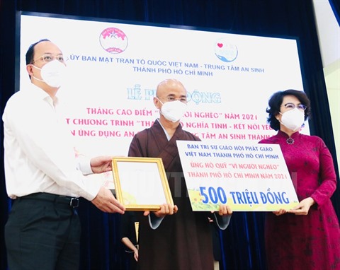 Au cours des 9 premiers mois de 2021, toute la ville a collecté plus de 115 milliards de dôngs auprès du Fonds pour les pauvres. Plus de 113 milliards de dôngs ont permis deconstruire 3 "maisons de gratitude", d’en réparer 14 (plus de 500 millions de dôngs) mais aussi de construire 98 "maisons du cœur" offertes aux invalides et malades de guerre (plus de 5 milliards de dôngs), de décerner 359 bourses Nguyên Huu Tho d'un montant de près de 500 millions de dôngs, d’offrirdes cadeaux à 156 mères héroïnes, des vétérans blessés (plus d'un milliard de dôngs), des cadeaux du Têt aux pauvres (plus de 70 milliards de dôngs).