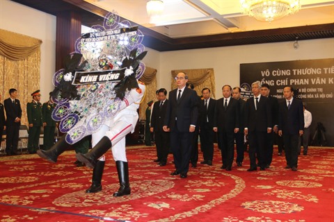 | Nguyên Thiên Nhân, membre du politburo et secrétaire du Comité du Parti communiste vietnamien pour Hô Chi Minh-Ville, rend un dernier hommage à l'ancien Premier ministre Phan Van Khai. |