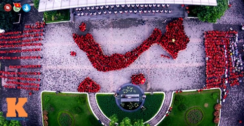 | L’image de la carte nationale est formée par des jeunes vietnamiens. |