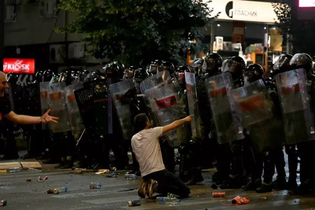 | Incidents pendant une manifestation antigouvernementale à Belgrade, le 28 juin. |