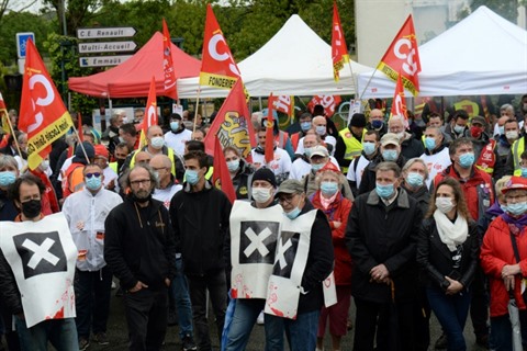 | Rassemblement au Mans le 6 mai contre le démantèlement de la filière automobile en France. |