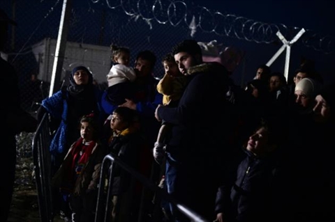 | Des réfugiés syriens et irakiens font la queue à un poste-frontière entre la Grèce et la Macédoine, près d'Idomeni, en Grèce, le 27 février. |