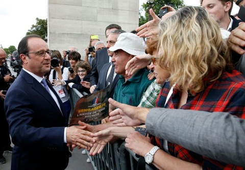 | François Hollande lors d'un bain de foule place de la Concorde à Paris. |