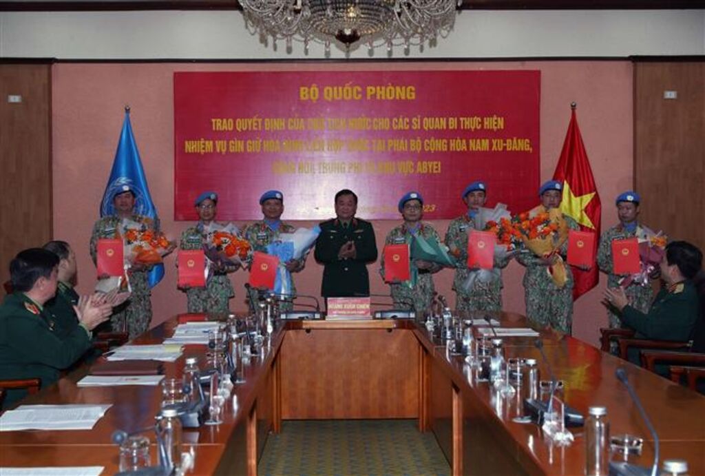 Le lieutenant-colonel Nguyên Kim Tinh et le sous-capitaine Nguyên Nhu Tuân ont été nommés observateurs militaires à la Mission des Nations unies au Soudan du Sud (MINUSS). Le lieutenant-colonel Nguyên Quôc Khanh, le lieutenant-colonel Nguyên Van Tiêp, le commandant Nguyên Xuân Truong, le capitaine Trân Nam Phuong partiront pour les opérations à la Force intérimaire de sécurité des Nations unies pour Abyei (FISNUA). En outre, le commandant Trân Thai Son travaillera à la Mission des Nations Unies en République centrafricaine.