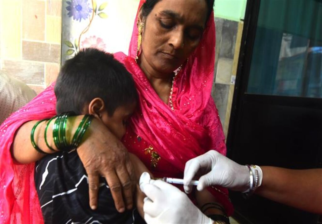 | Vaccination contre la rougeole à Mumbai (Inde). |