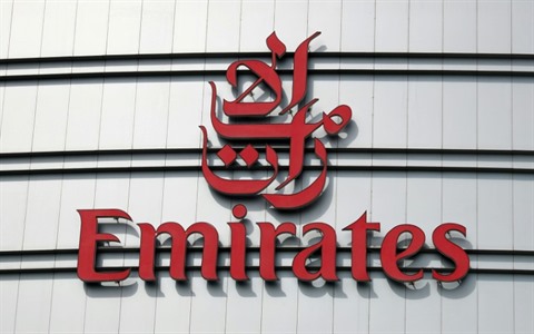 | Logo de la compagnie aérienne Emirates, prise le 10 août 2017 à Dubaï. |