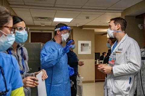 | Le docteur James Samuel Pope au travail avec ses collègues dans la lutte contre l'épidémie de COVID-19 dans son unité de soins intensifs de l'hôpital de Hartford, dans le Connecticut, le 18 janvier. |