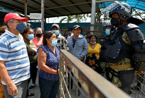 | Des proches de détenus attendent des informations devant la prison de Guayaquil, après des affrontements entre prisonniers, le 30 septembre en Équateur. |