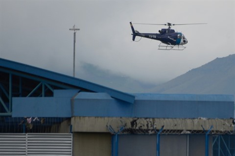 | Un hélicoptère militaire survole le centre pénitentiaire de Latacunga (Équateur), le 22 juillet. |