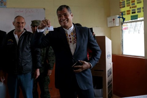 | Le président équatorien Rafael Correa vote le 19 février à Quito. |
