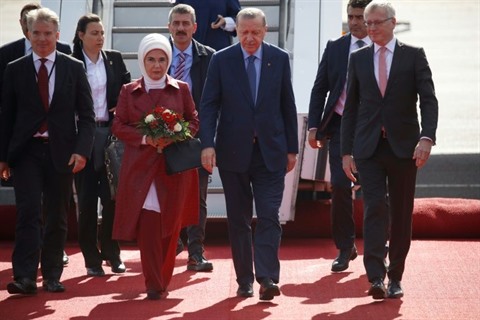 | Le président turc Recep Tayyip Erdogan et son épouse Emine à leur arrivée à Berlin le 27 septembre. |