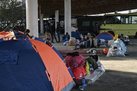 | Des tentes de migrants près d'un terminal de bus, le 8 mars à Edirne, en Turquie. |