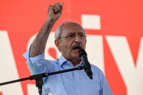 | Kemal Kilicdaroglu, chef du Parti républicain du peuple (CHP), lors de la manifestation de l'opposition le 24 juillet place Taksim à Istanbul. |