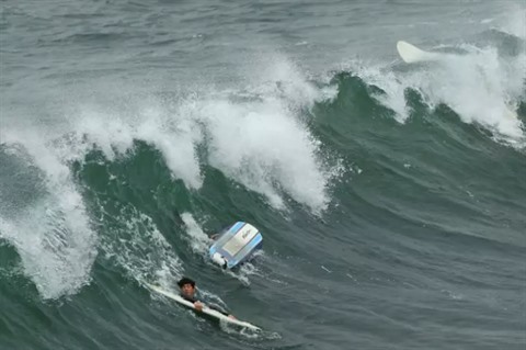 | Des surfers s'agrippent à leurs planches à Manhattan Beach, en Californie, le 15 janvier. |