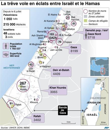 À Gaza, huit enfants et deux adultes sont morts dans le camp de réfugiés de Chati, les deux parties se renvoyant la responsabilité de cet énième drame sanglant d'une guerre déclenchée le 8 juillet.