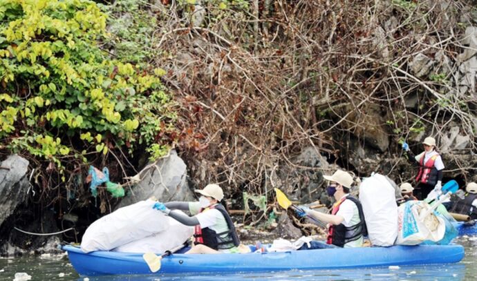 >> Ramasser les déchets plastiques dans la baie de Lan Ha