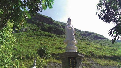 | La pagode Cao se trouve sur le mont Phô Dà Son (à plus de 300 m d’altitude), dans le district de My Duc, à Hanoï. Ici, une statue de Bodhisattva. |