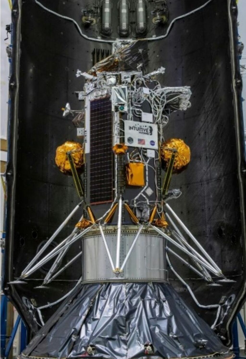| Vue de l'alunisseur Nova-C dans la fusée SpaceX Falcon 9 transmise par la NASA, le 7 février. Photo : AFP/VNA/CVN |