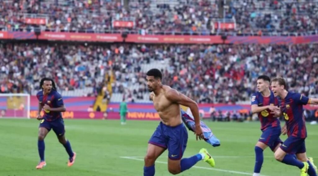 | Ronald Araujo, auteur du but de la victoire pour le FC Barcelone face à Gérone, le 18 octobre à Montjuic. |